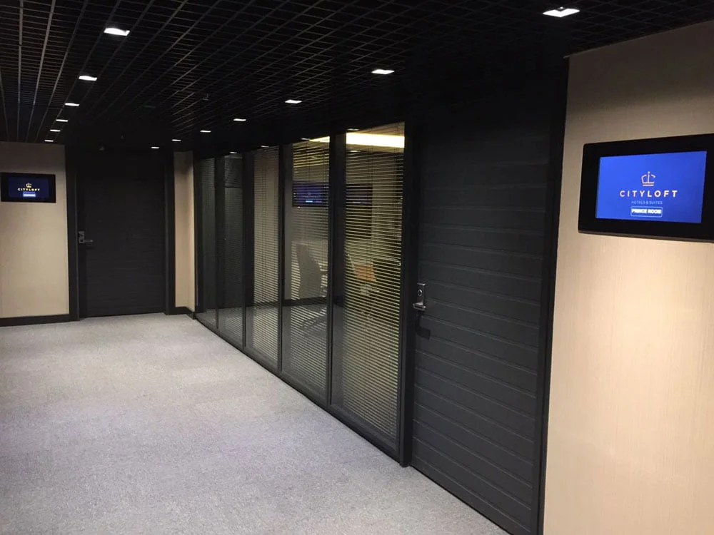 BUSİNESS ın fark yaratan detayı derzli dolgusudur. Alüminyum profiller ile taşıyıcı sistem içerisine yerleştirilen monoblok camlı modüller veya ahşap modüllerin montajı ile tamamlanır. Dolu modüller18 mm melamin, laminat veya doğal kaplamalı ahşap panellerden imal edilmektedir. Camlarda 4-5-6 mm kalınlıklarında Temper cam kullanılmaktadır.